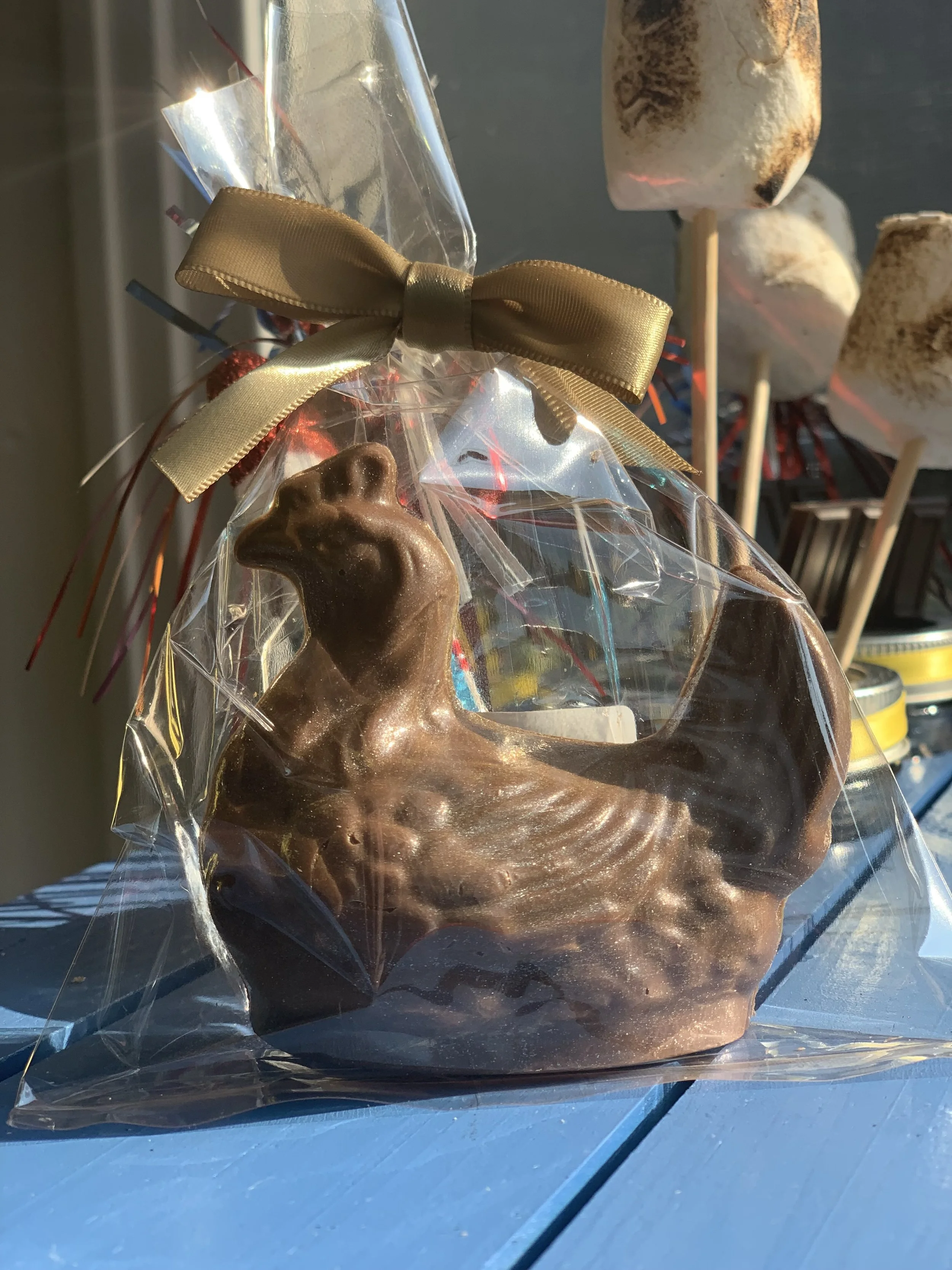 When you visit Claire will likely be in the kitchen making caramel or a variety of items from Belgium chocolate. Steve normally greets friends when they arrive and runs the register.
